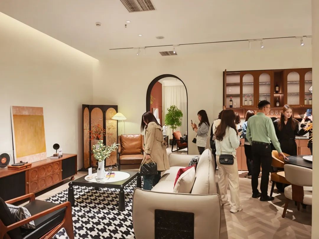 新品发布品鉴会现场,米兰·(milan)中国官方网站中古全案凭借独特的空间布局,创新的时尚设计,优质的材料细节以及精心的场景营造,吸引了全国优秀经销商及业界嘉宾们的目光,他们沉浸在高级的美学世界里,感受创新与品质交织的魅力。米兰·(milan)中国官方网站中古展厅里人潮涌动,众多经销商都对中古全案新品的创新设计称赞有加,现场签约不断,气氛热烈。